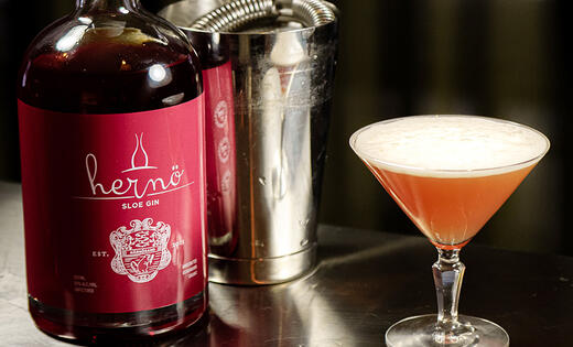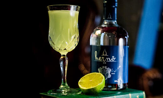 En klassisk drink i ny tappning där Hernös slånbärsgin blir till en syrlig drink med citrustoner. En vacker och utsökt drink.